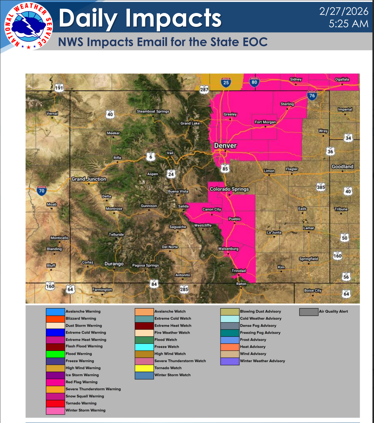 NWS Boulder / Denver Forecast Office Weather Story: Red Flag Warning issued for the I-25 corridor and the northeast plains until 6 p.m.
