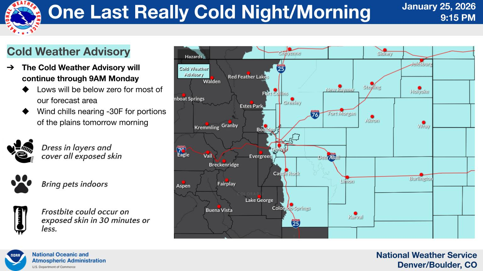 NWS Boulder / Denver Forecast Office Weather Story: Cold Weather Advisory Issued