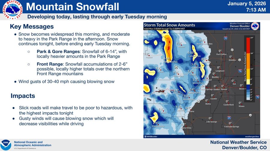 NWS Boulder / Denver Forecast Office Weather Story: Winter Weather Adivsories issued for Park and Front Ranges.